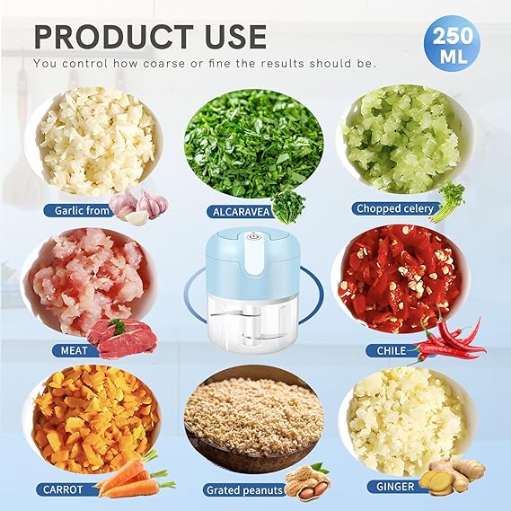 - Simple et pratique : grâce à sa conception compacte et à ses fonctions intuitives, ce mini hachoir électrique est facile à utiliser. Une simple pression sur le bouton de commande permet de râper sans effort, et sa taille pratique le rend idéal pour un usage quotidien en cuisine.